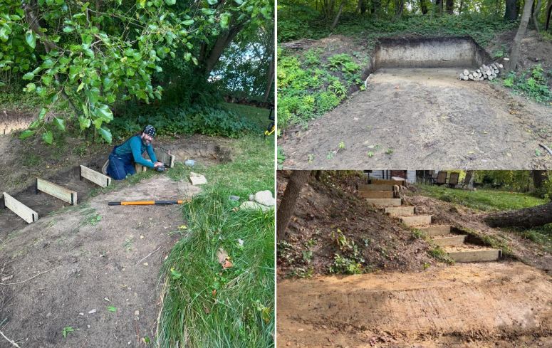 We have this completely overgrown area behind our house that was nothing but dense trees, shrubs, and foliage. My husband has been working for three months straight (digging, cutting, clearing) to carve out space for a hobbit house. He’s loved Tolkien since childhood and always dreamed of having his own.