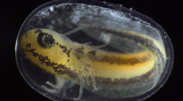 This timelapse video from director Jan van IJken tracks the development of a single-celled zygote into the hatched larva of an alpine newt.