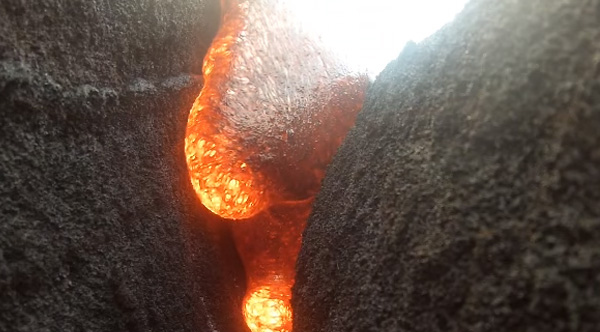 Erik Storm, a lead guide of volcano tours in Hawaii, recently placed his GoPro camera down into a small crevasse to try and get up close footage of flowing lava.