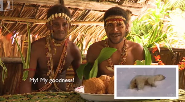 Tribes people from The Solomon Islands, Ethiopia and Mongolia react to a polar bear video from BBC's Planet Earth.