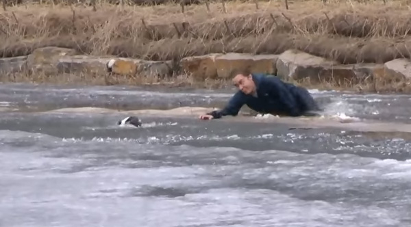 Man Jumps Into Freezing Cold Pond To Save His Dog That Fell Through The Ice