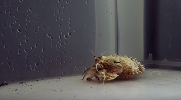 Pharaoh Cuttlefish Pretending To Be A Hermit Crab Gets Busted