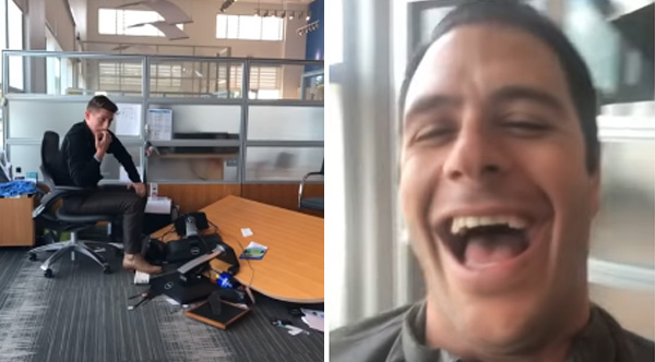 Coworker's Desk Falls Apart While On Sales Call