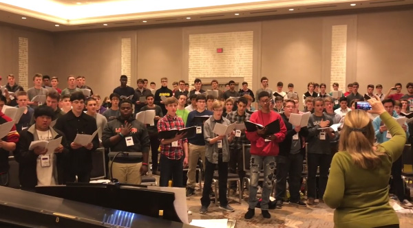 A high school honor choir performs Eric Whitacre's arrangement of The Star Spangled Banner.