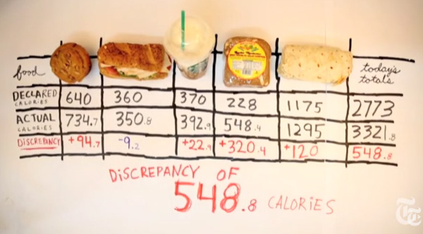 With the help of a science lab, the filmmaker Casey Neistat finds that calorie listings on food labels can be highly inaccurate.