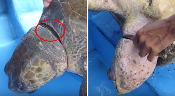 Research Team Removes A Rope That's Been Tangled Around A Turtle's Neck For Years