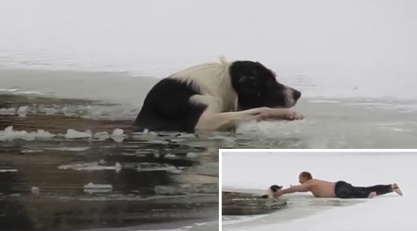 Shirtless Hero Doesn't Give Up Trying To Save A Frightened Dog Who Had Fallen Through Ice