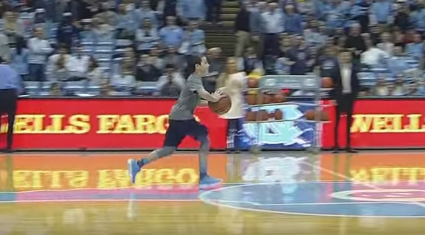 Asher Lucas drains, not one, but three straight half court shots during halftime of a North Carolina basketball game.