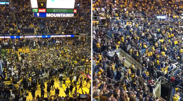The West Virginia men's basketball team just upset the #1 ranked team in the country, Baylor. While fans stormed the court, the entire crowd sang 'Take Me Home, Country Roads' by John Denver. When the chorus started I got chills.