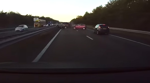 Dashcam footage shows a Tesla car emergency braking as the vehicle predicts an accident before it happens.