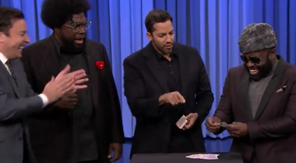 David Blaine performs several simple card tricks with Jimmy and members of The Roots before freaking everyone out with an illusion no one expects.