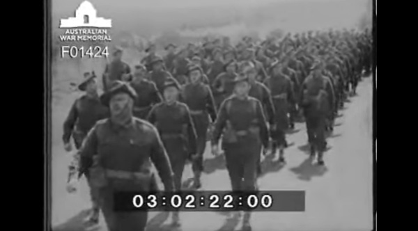 For over a century now, Waltzing Matilda has been a favorite with Australian troops whenever they travel overseas. Here's chilling footage of Australian soldiers during WWII singing the timeless tune as they march.