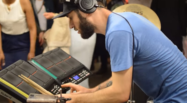 DJ/Drummer Matt Vorzimer performs a remix of Rihanna's 'Work' in Union Square subway station.