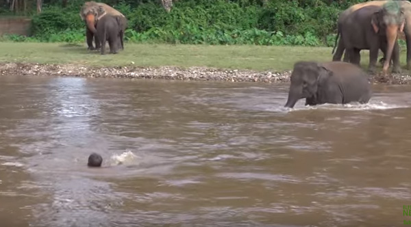 Watch This Elephant Rush Into The Water To Rescue A Human