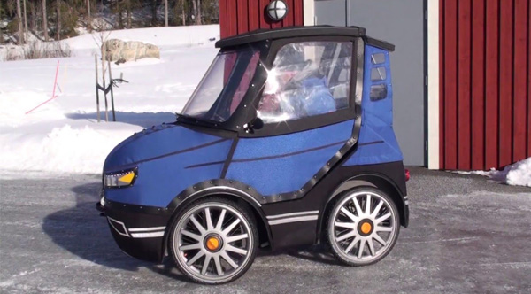 The weather in Sweden is not always bicycle-friendly, so Mikael Kjellman designed and built a four-wheeled bike with full fabric body to keep dry and warm in all-weathers.