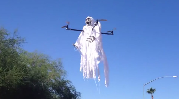 He decided to turn his remote controlled drone into a creepy flying ghoul.