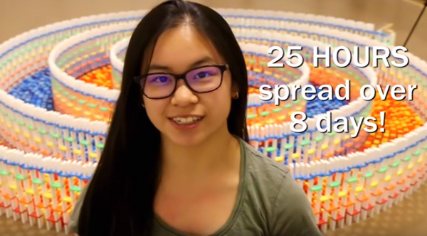 She Spent 25 Hours Creating This Amazing Triple Spiral With 15,000 Dominoes