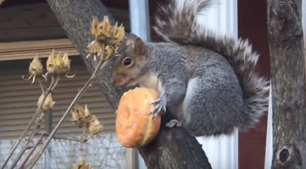 Squirrel Steals A Glazed Donut And Casually Eats It In A Tree