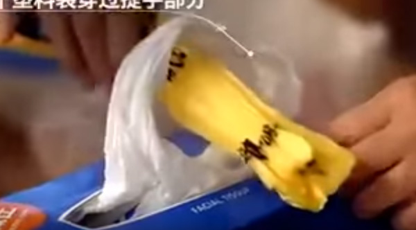 A Chinese life hack for handling a lot of supermarket plastic bags.