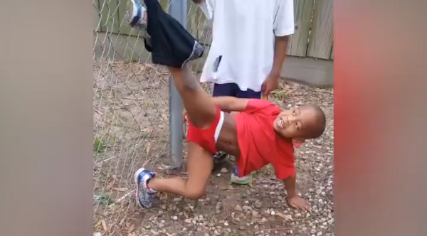 Kid Gets Stuck On The Fence Twice And Dad Absolutely Loses His Mind Laughing
