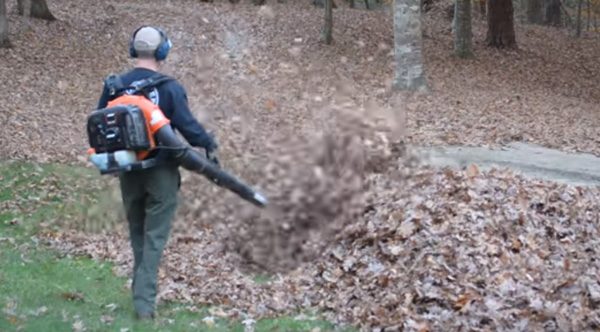 That look of utter betrayal at the end toward the camera is hilarious. Dad gets scared by the kids while leaf blowing.