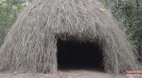 Using only things found in nature for tools and supplies, he built this grass hut by himself in the woods. What I love best about all of his videos is that he never talks. The only sounds you hear are from nature which makes it so peaceful to watch.