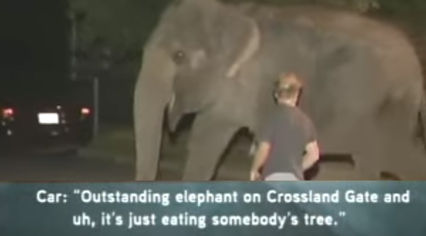 A 911 call about an escaped elephant.