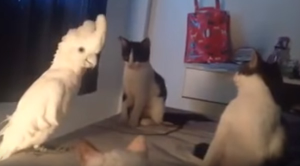 Cockatoo Learns To Meow And The Cats Are Baffled