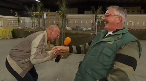 Reporter Loses It When He Hears This Chicken Farmer Laugh Like A Chicken