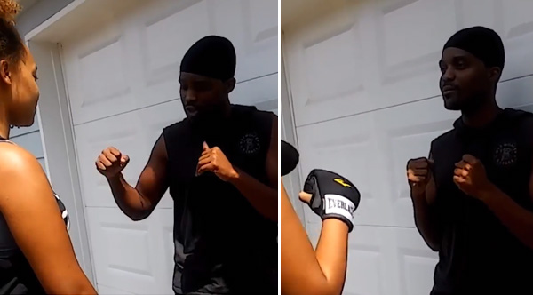 He's Teaching Her How To Punch, Does Not Expect Her To Do This