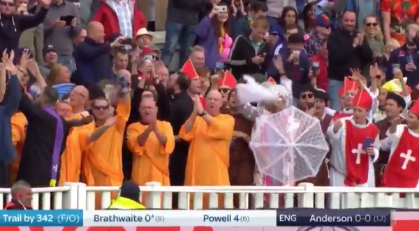 A beachball was confiscated during a cricket game today. English fans at their very best try to get it back.