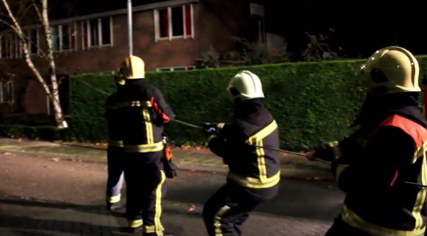 Dutch firemen get assistance from a hardworking pup.