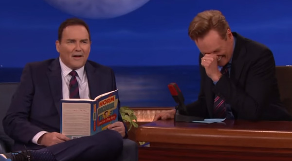 Conan Can't Stop Laughing At Norm Macdonald Talking About His 'Battle-Axe' Wife