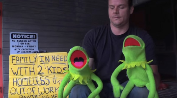 Man Performs 'Under Pressure' With 2 Kermit Dolls To Help The Homeless