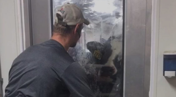 Adorable video shows Wisconsin dairy farmer playing peek-a-boo with a cow.