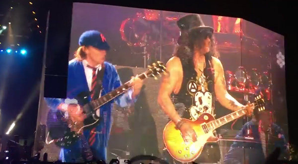 Watch Guns 'N Roses perform "Whole Lotta Rosie" with AC/DC's Angus Young.