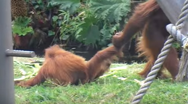 Baby Orangutan Tries To Escape Mom, Keeps Getting Caught