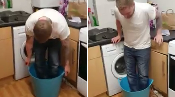 Girlfriend Can't Stop Laughing At Her Boyfriend Trying To Lift His Own Body Weight In A Bucket
