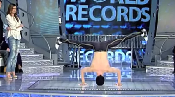 This is Bboy Jonas setting the world record for the most head spins in one minute (131) in Rome, Italy in 2010.