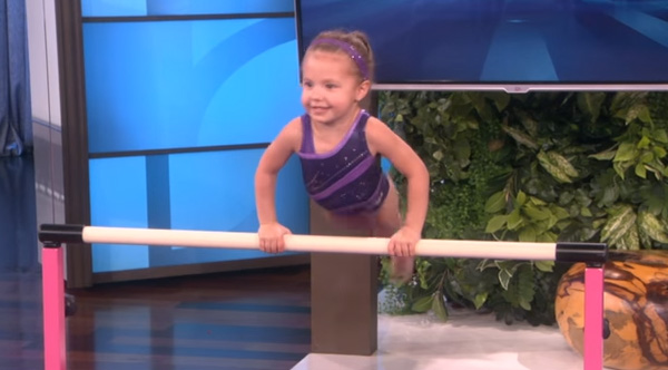 Check out this little gymnast's amazing skills on The Ellen Show.