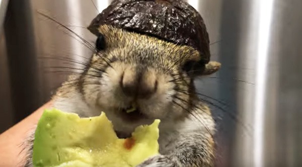 Squirrel Eating An Avocado With An Avocado Hat