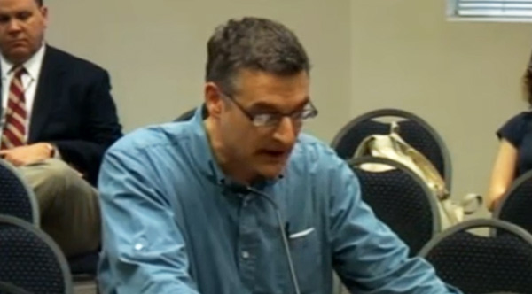 Frederick High teacher Matthew Johnston speaks to the Frederick County Board of Education.