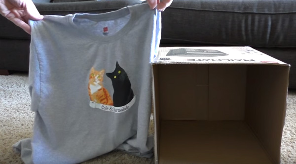 He Wraps A T-Shirt Around This Box To Create The Perfect Cat House