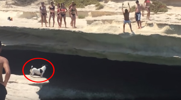 After watching several people dive off the cliffs in Malta, this Jack Russell decided it was time to stop being a spectator and join in on the fun!
