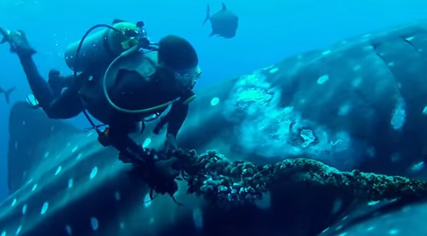 Amazing Footage Of A Diver Freeing A Whale Shark From Commercial Fishing Rope