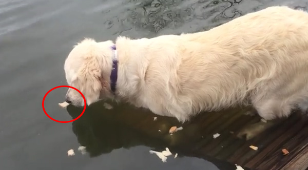 Golden Retriever Waits Patiently With A Piece Of Bread Under Her Mouth. This Is Brilliant!