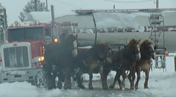Amish Man Uses REAL Horsepower To Pull Tanker Truck Out Of Snow