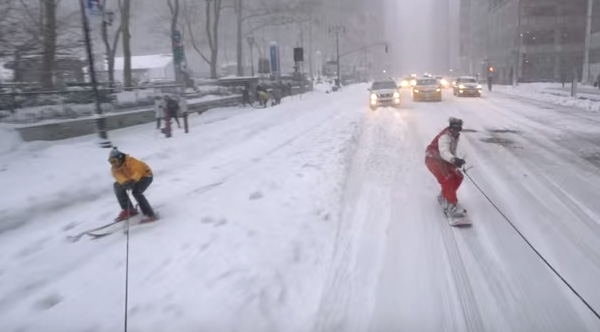 Two Guys Pulled By A Jeep Go Snowboarding In NYC. Watch How The Cops Handle It