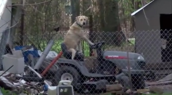 Tornado Broadcast Is Interrupted By A Dog On A Lawnmower