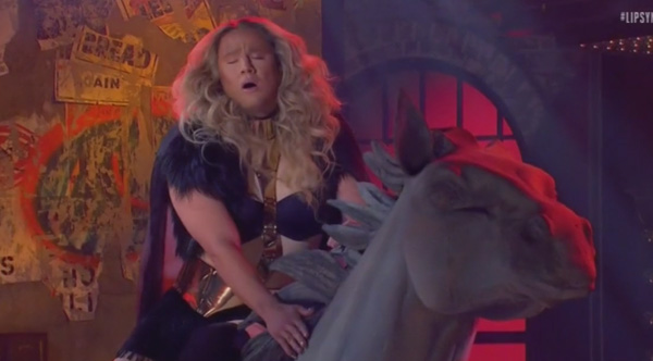 Channing Tatum arrives on stage atop a horse on wheels, proceeding to bust serious moves with an arsenal of backup dancers. And just when you think it can't get any more absurd, Beyoncé herself joins Tatum on stage, lip-syncing to her own song.